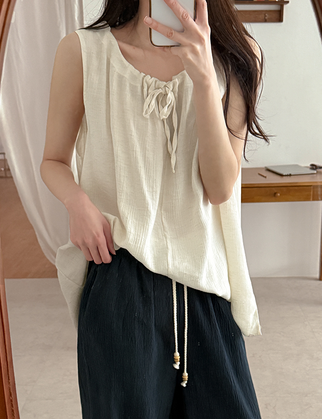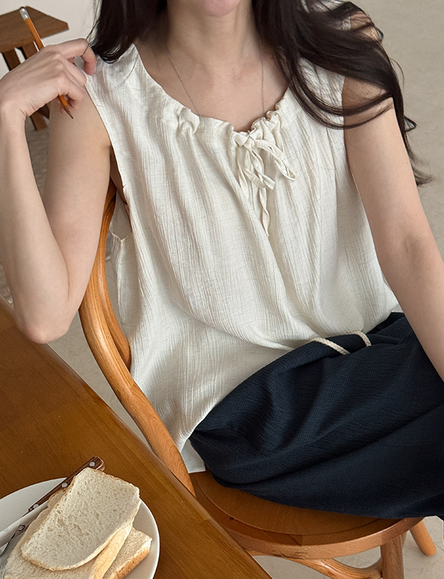 온니드 셔링 リボン 袖なし ブラウス 87363