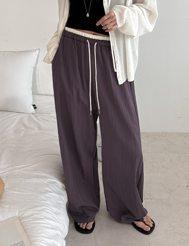 더블라인 웨이스트 ワイド ゴム パンツ 87473