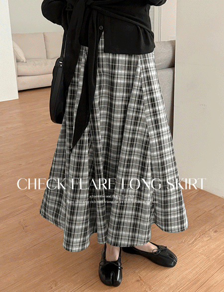포이린 뒷밴딩 チェック フレア ロング スカート 87298