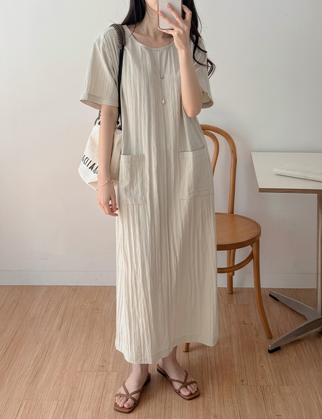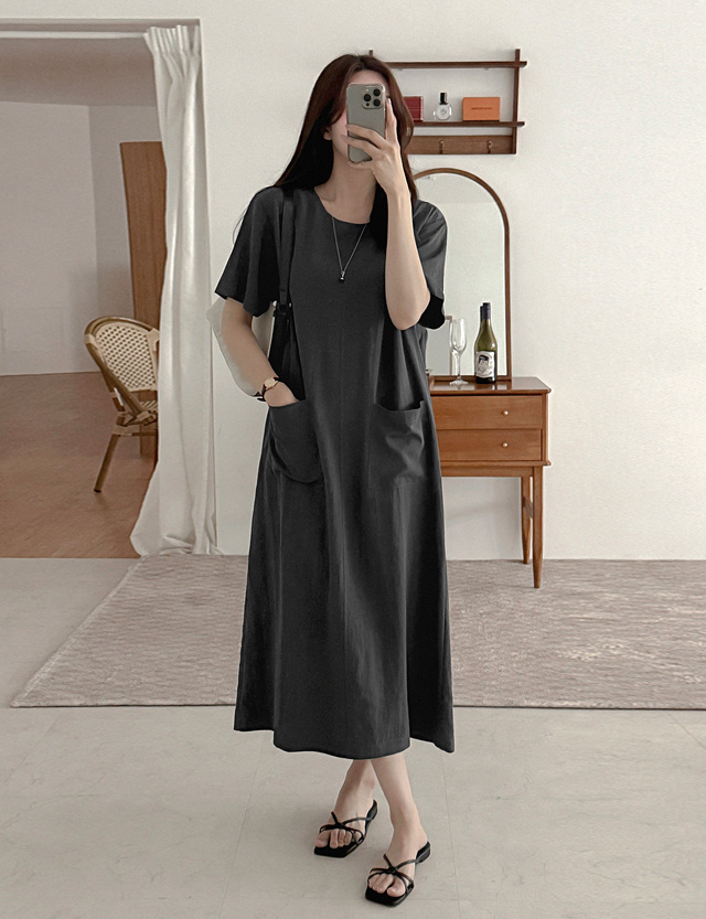 다라민 ラウンドネック ロング ワンピース 87534