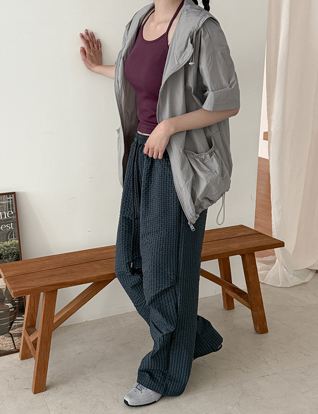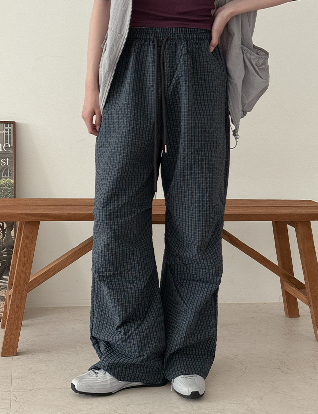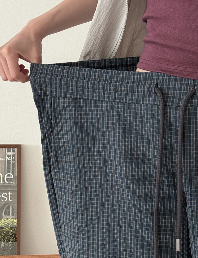링퀴 ゴム チェック ワイド 바스락 パンツ 87499