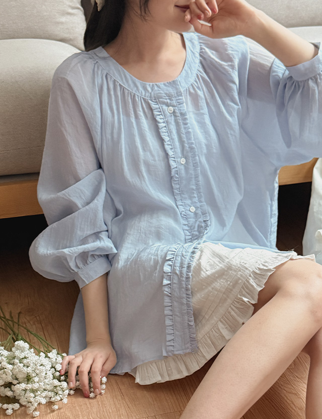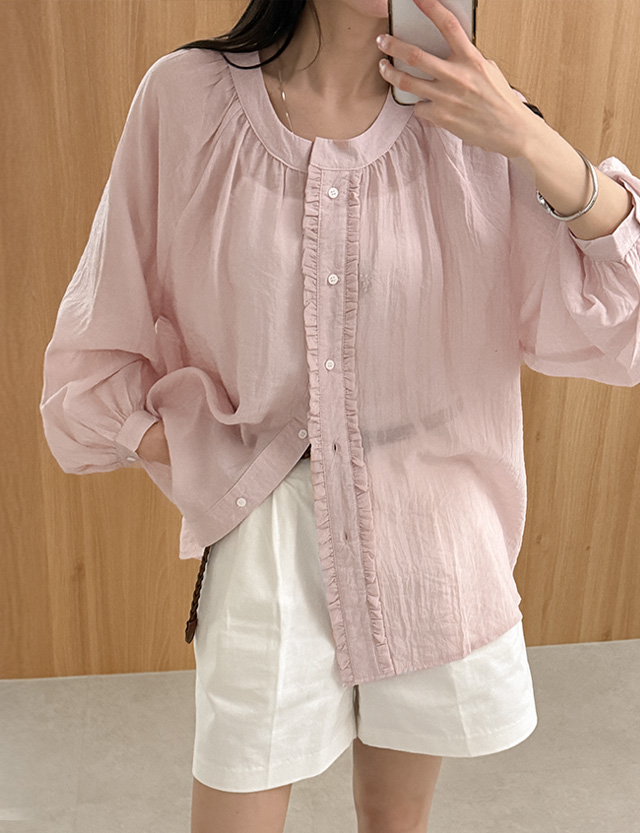 [09초이스] 프리핑 ラグラン ルーズフィット フリル ブラウス 87483
