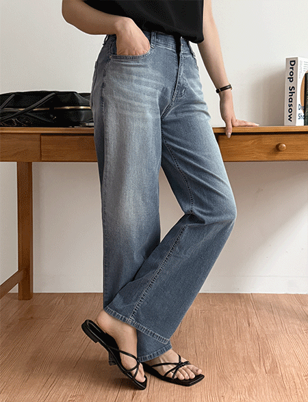 플업 히든밴딩 ブラシ ワイド ストレート デニム パンツ 87583
