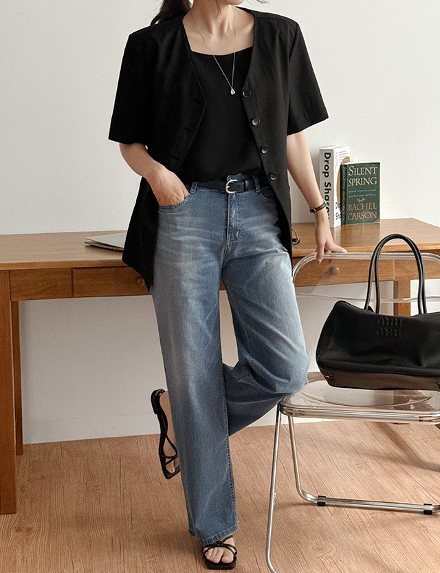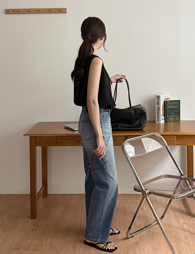 플업 히든밴딩 ブラシ ワイド ストレート デニム パンツ 87583