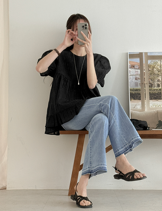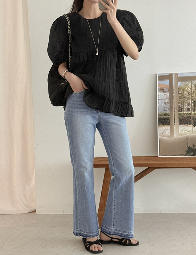 [3XL까지] 체터 밑단포인트 히든밴딩 ブーツカット デニム パンツ 87548