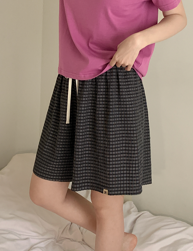 컴피데이 チェック パジャマ ゴム パンツ&스크런치 セットアップ 87384