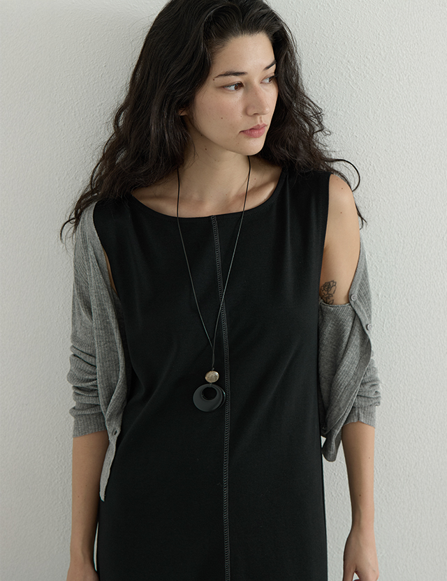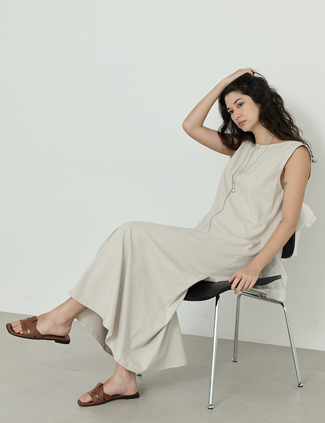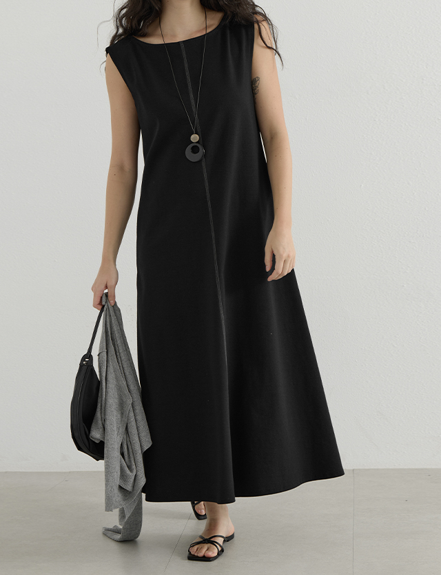 클래시크 톤온톤 袖なし ロング ワンピース 87574