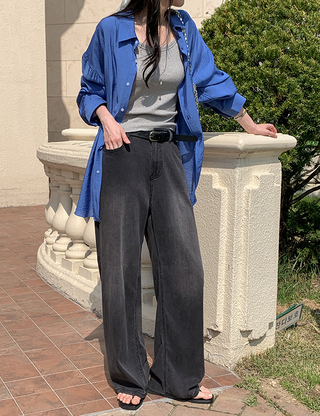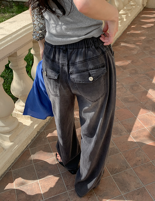 쿨텐션 スパン デニム ワイド 뒷밴딩 パンツ 87633