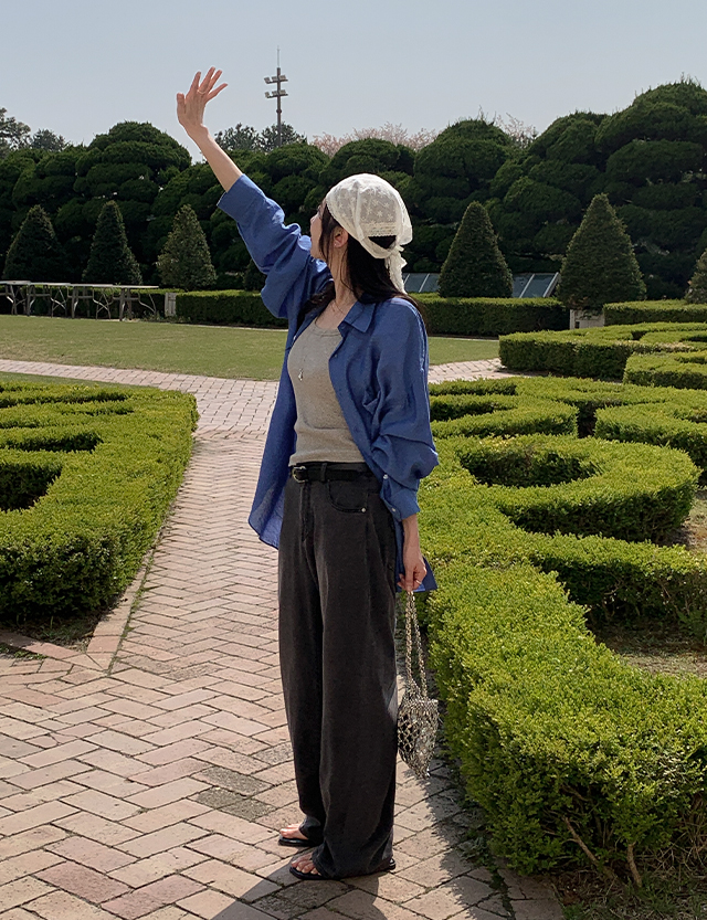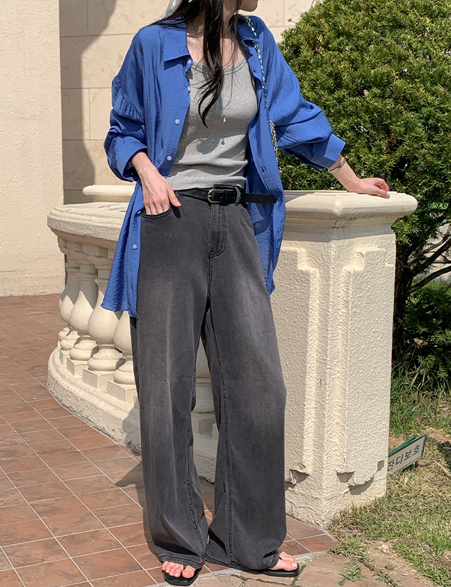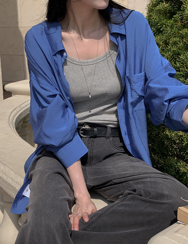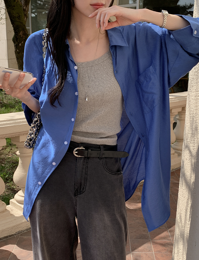 오로라 カラー 실키 ルーズフィット シャツ 87634