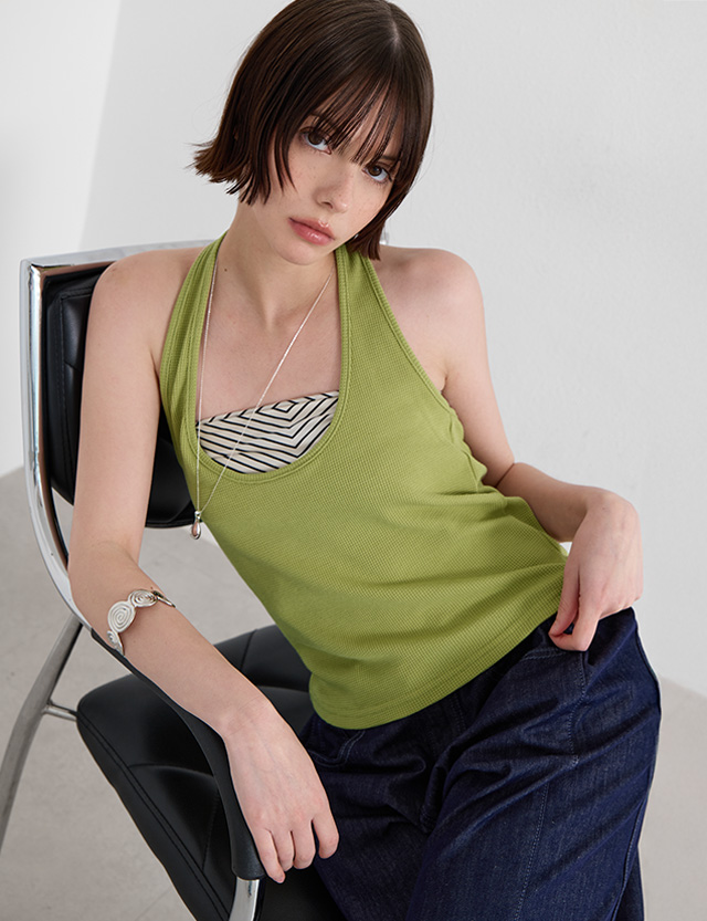 플로니 ホールターネック ラベル 袖なし 87712