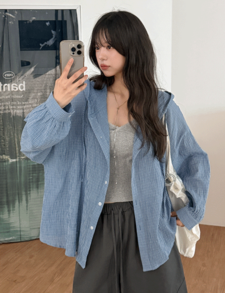 [09초이스] 내추럴모드 요루 チェック フード  シャツ 87809