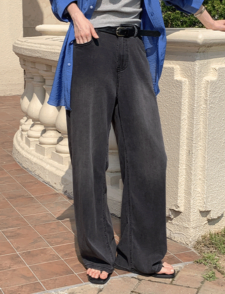 쿨텐션 スパン デニム ワイド 뒷밴딩 パンツ 87633