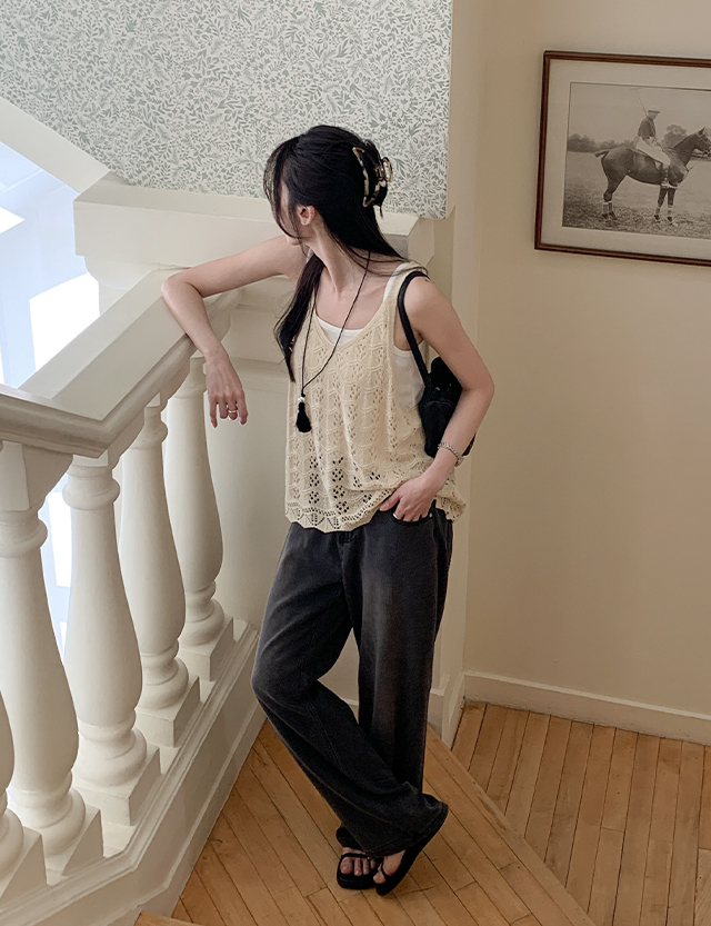 선셋 스카시 뜨개 ニット 袖なし 87632