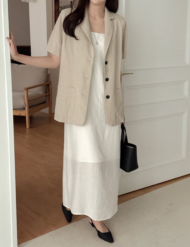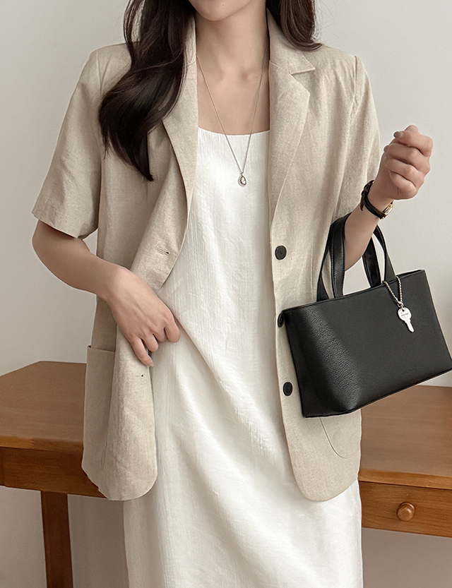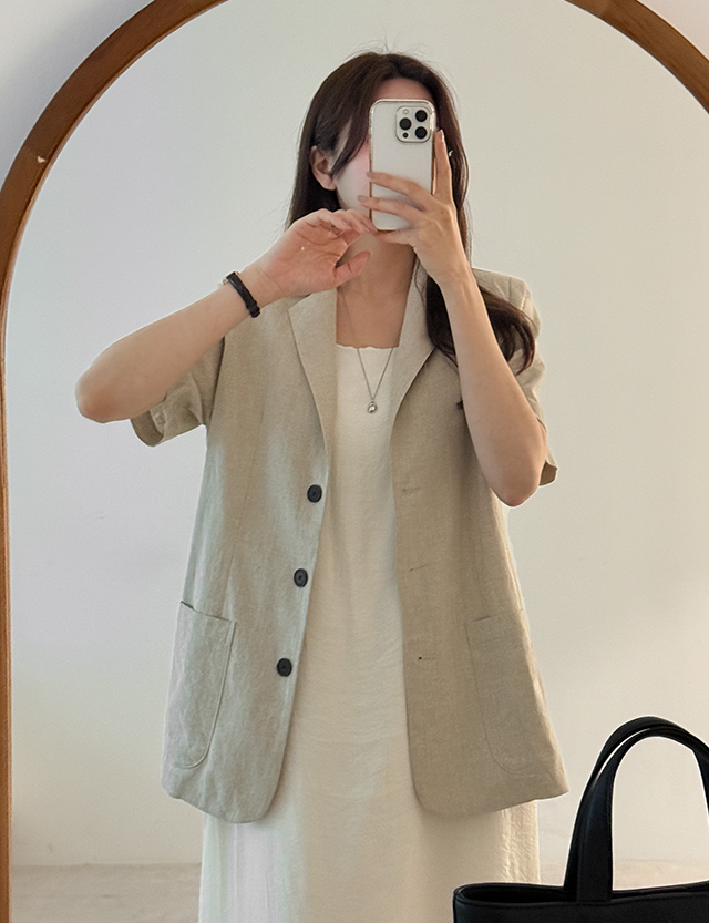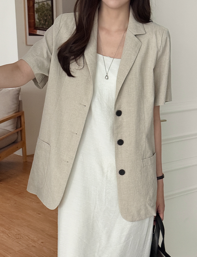 리솔덴 ベーシック リネン カラー 半袖 ジャケット 87595