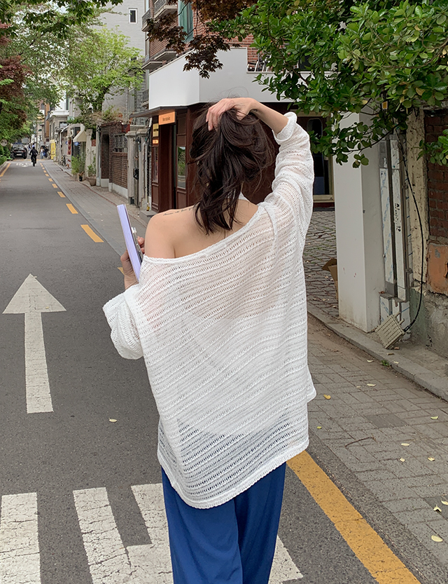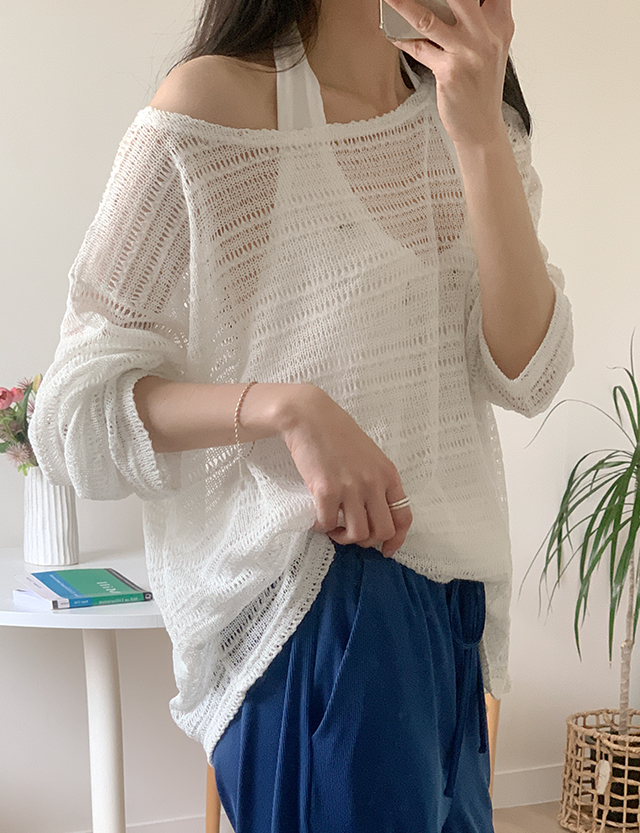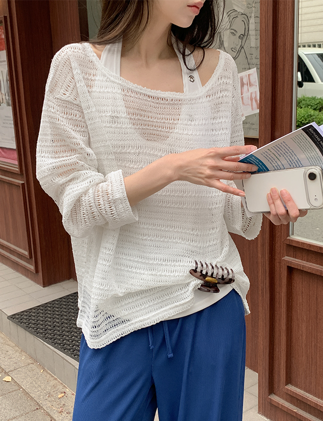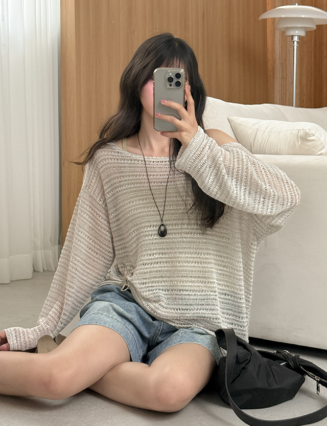 시원솔솔 ルーズフィット 보트넥 니트지 ティーシャツ 87787