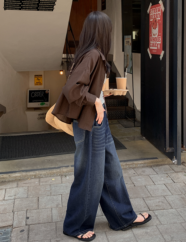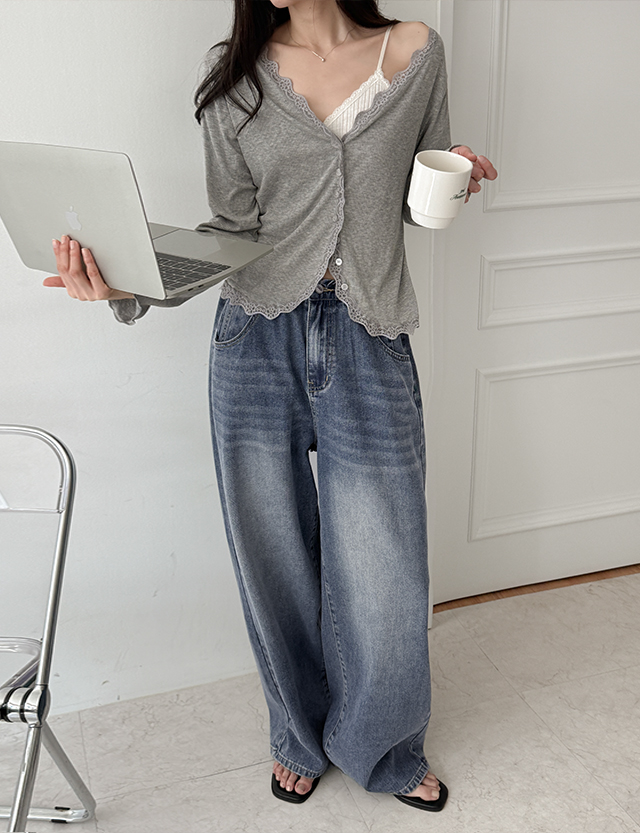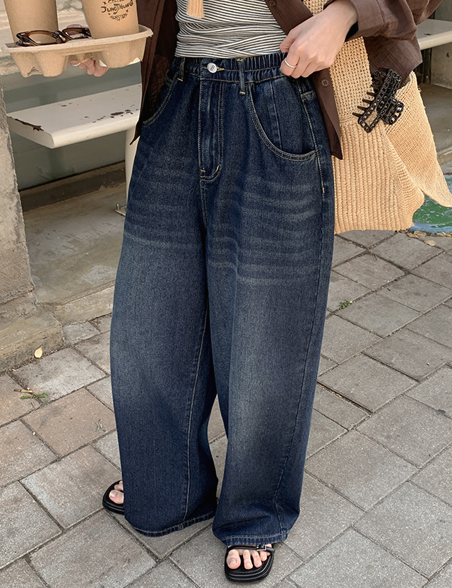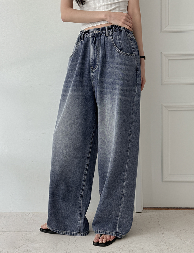 썸머데일리 ゴム ワイド デニム パンツ 87604