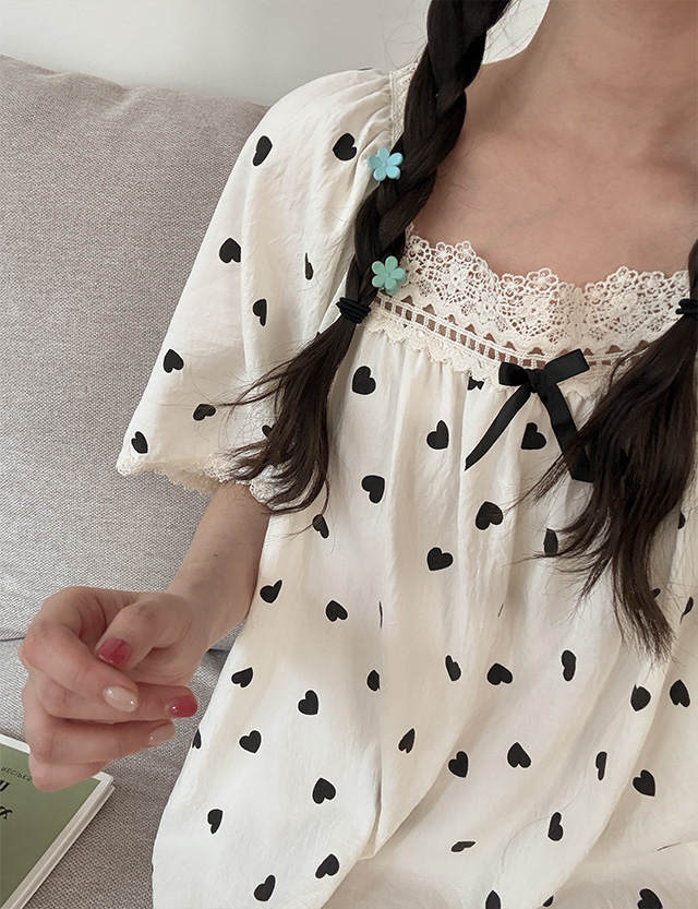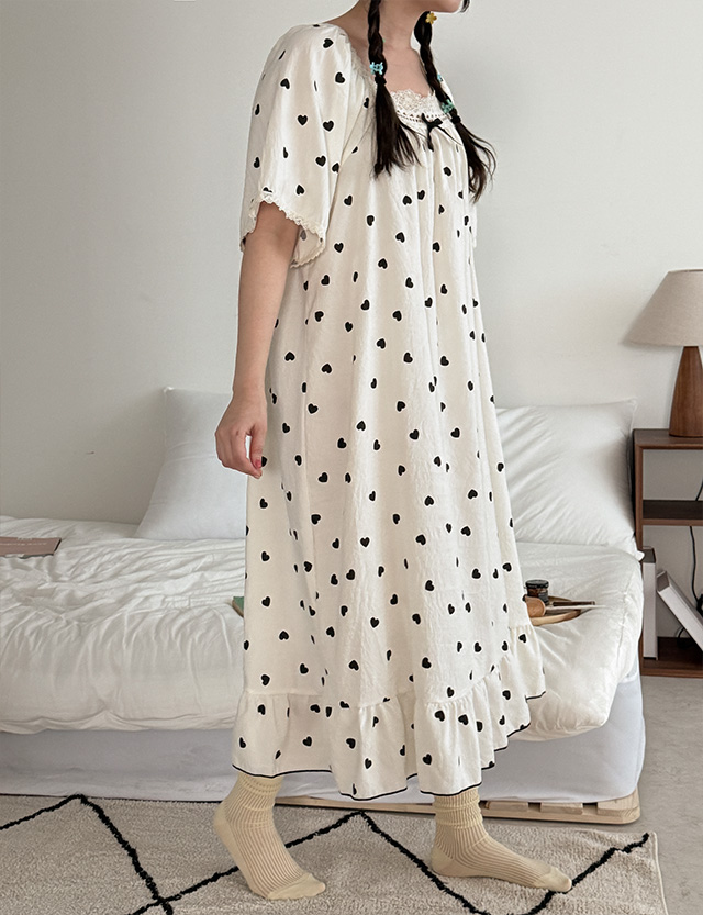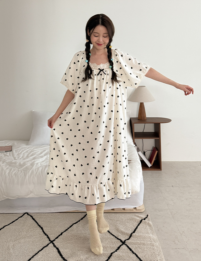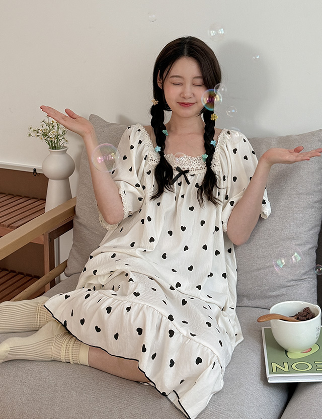 하티 レイス 스퀘어 パフ パジャマ ワンピース 87707