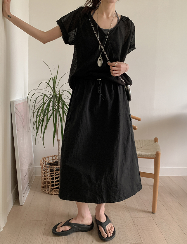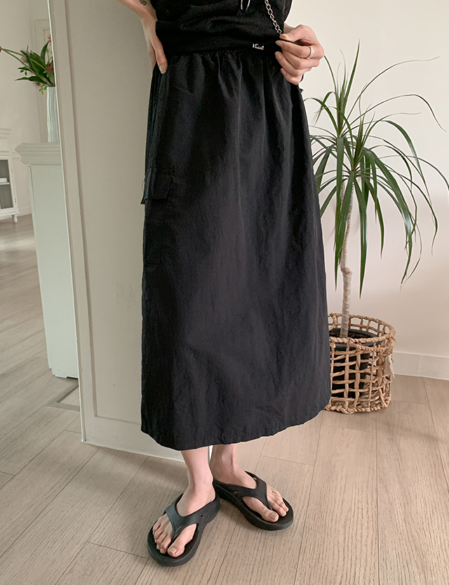 인버터 나일론 Aライン カーグ ゴム ロング スカート 87782