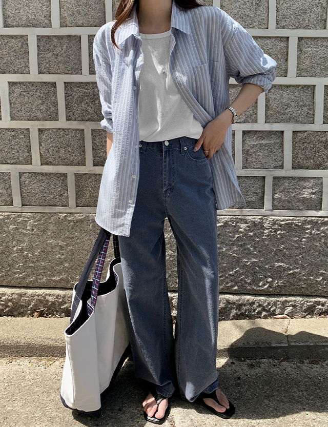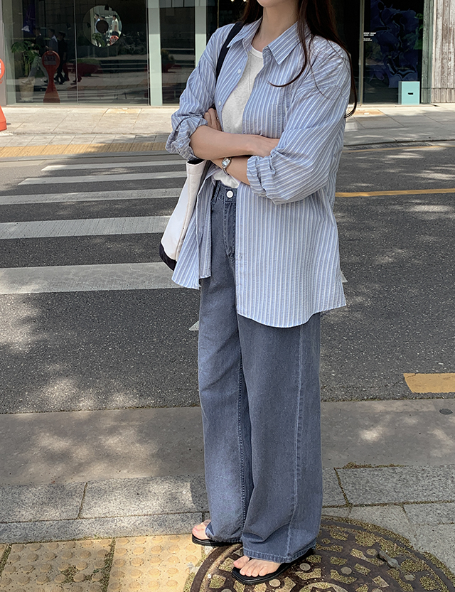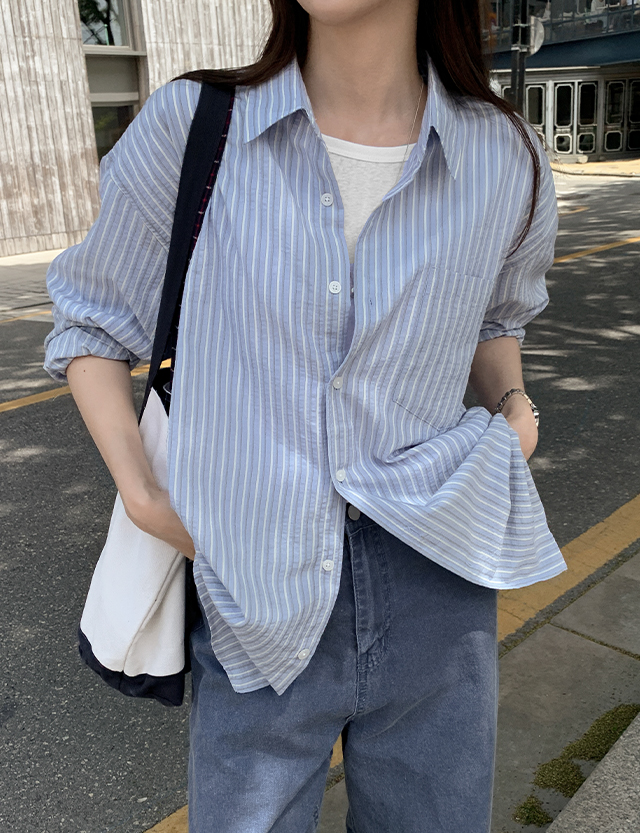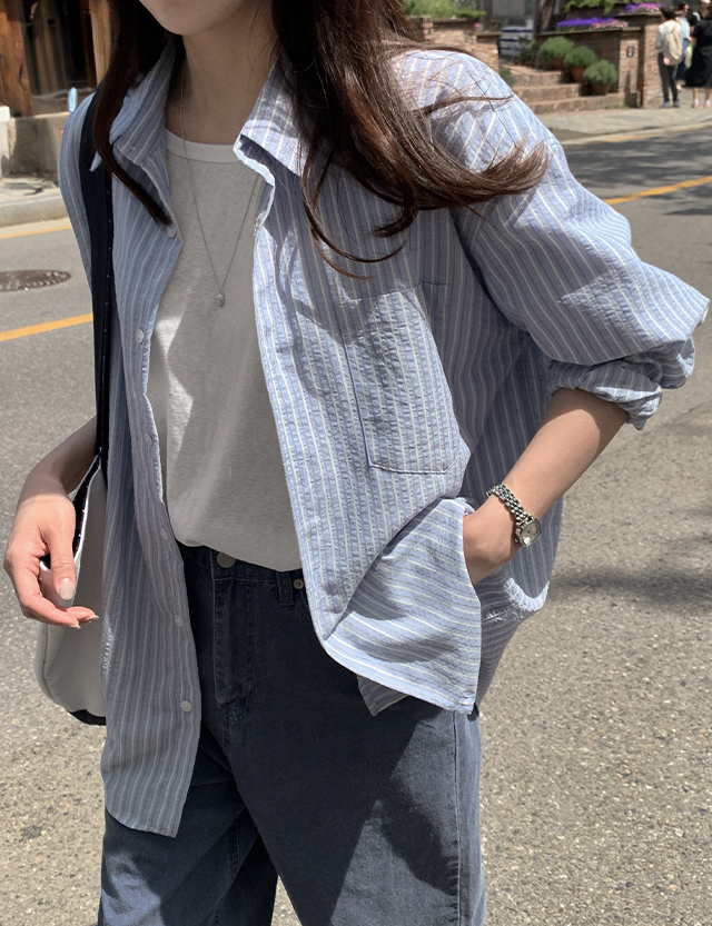 시어서커 ストライプ ルーズフィット シャツ 87736