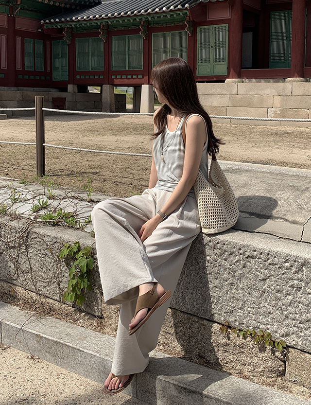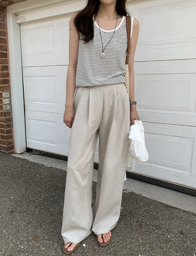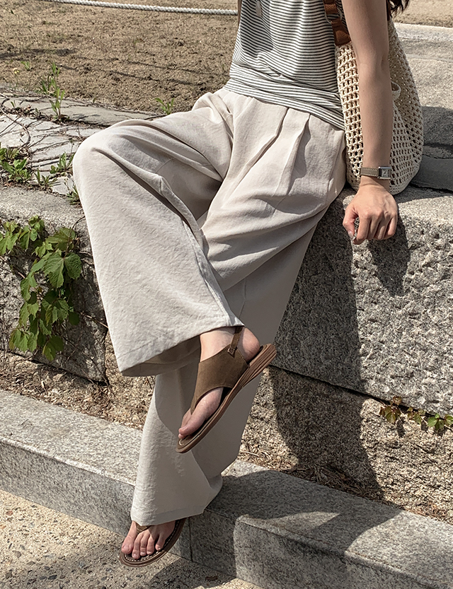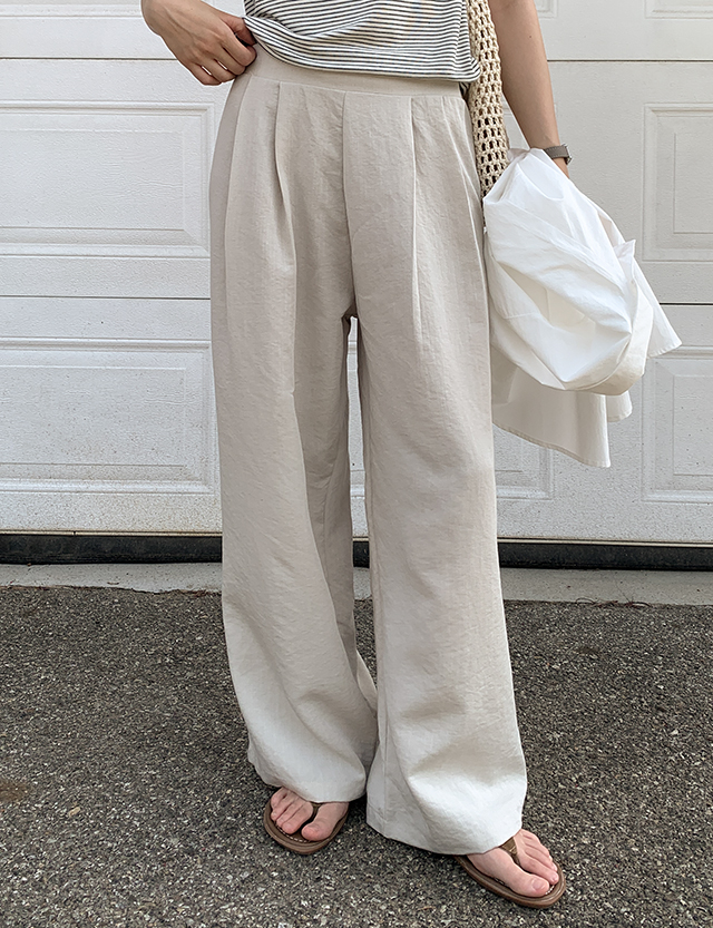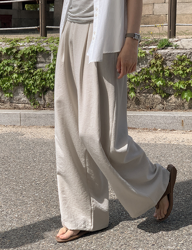 프루아 뒷밴딩 ワイド 핀턱 リネン スラックス 87729