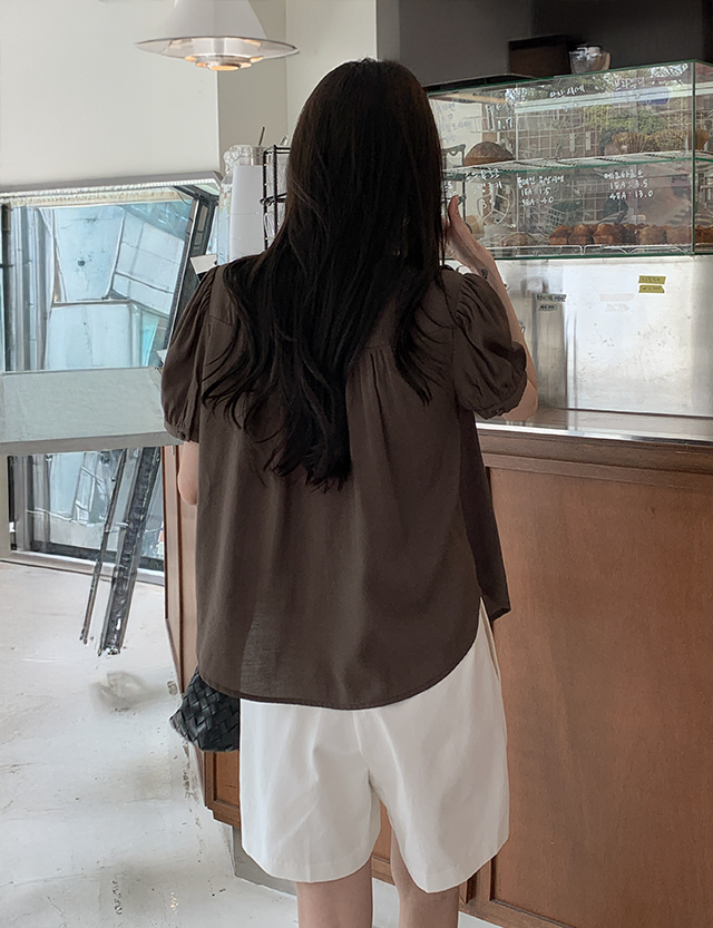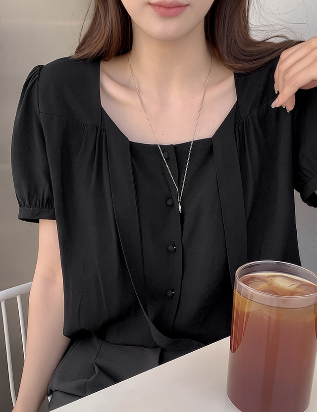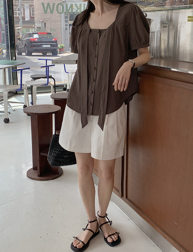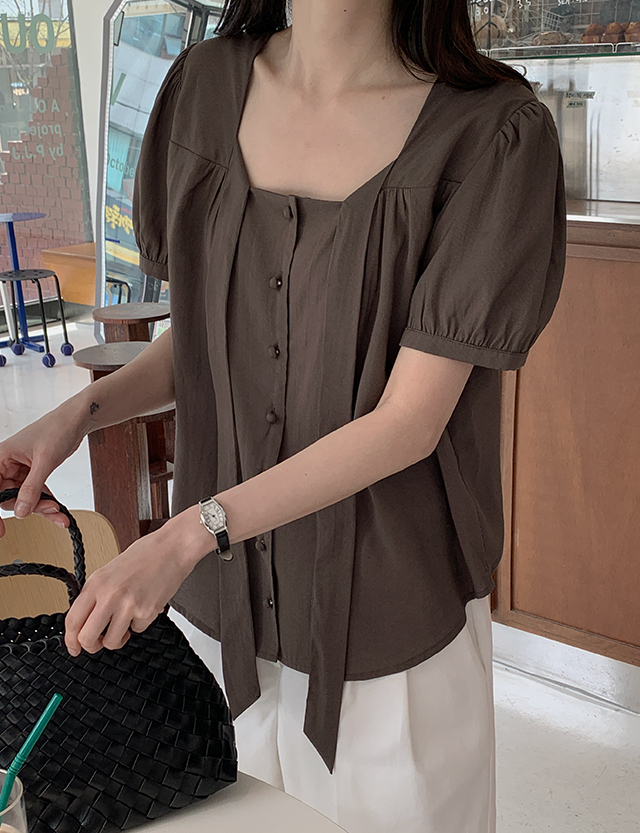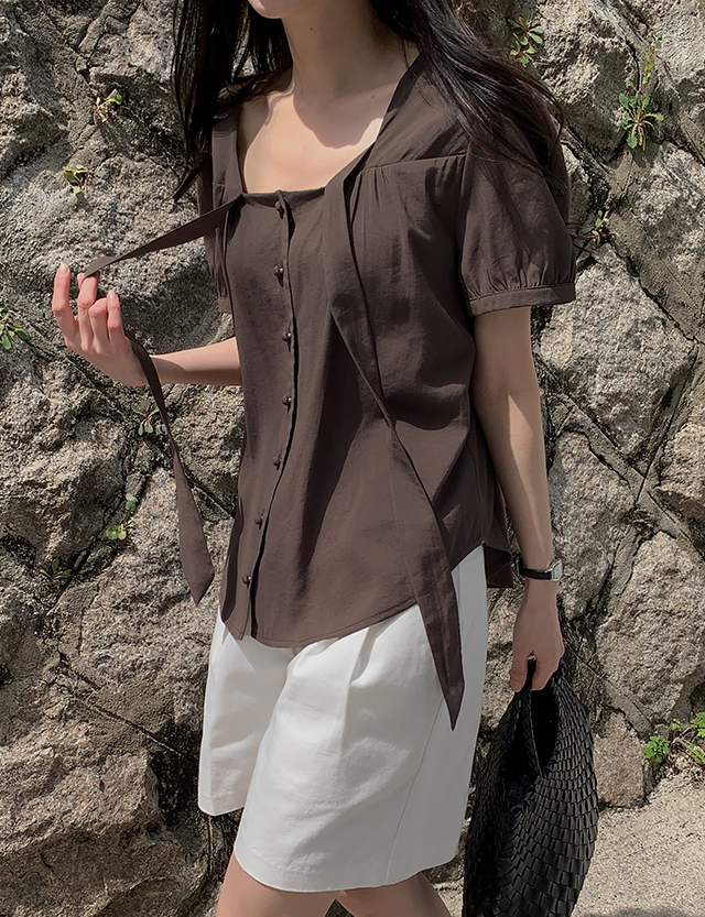 레비얀 스퀘어넥 타이 パフ ブラウス 87685