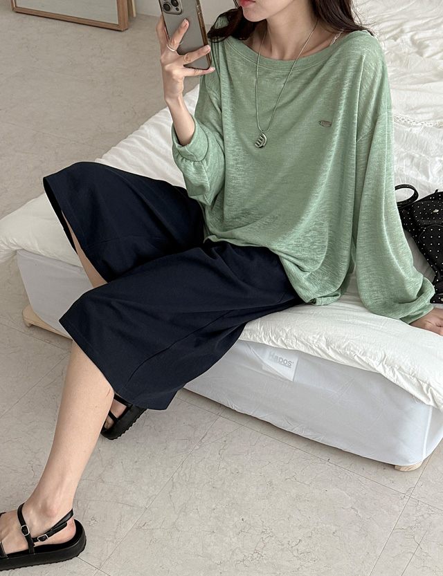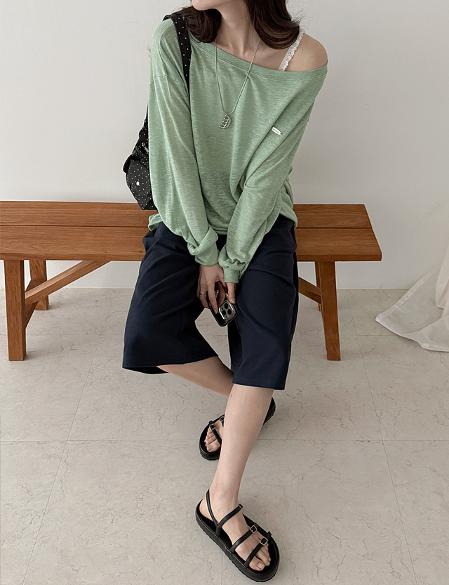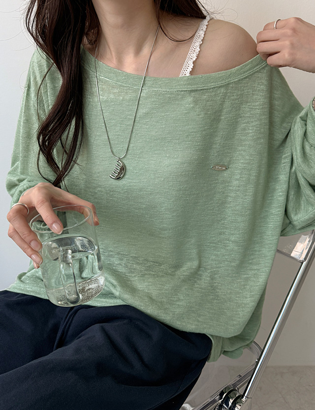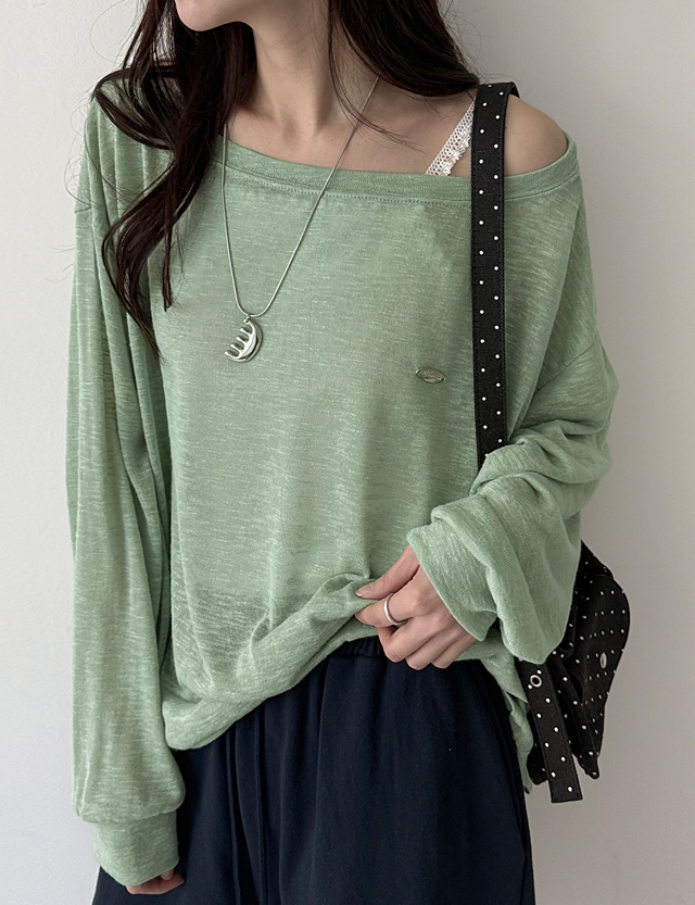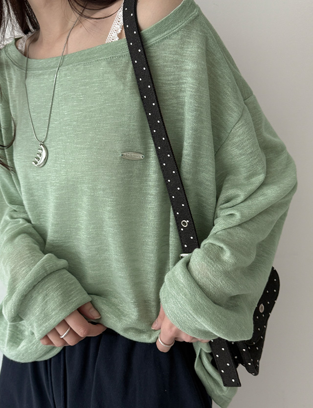 여리쉐입 보트넥 실버참 長袖 ニット ティーシャツ 87566