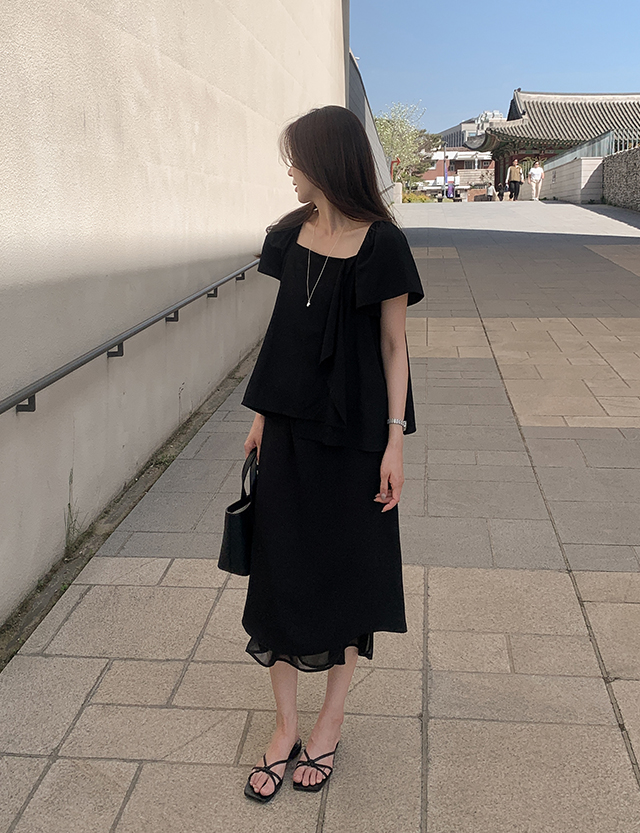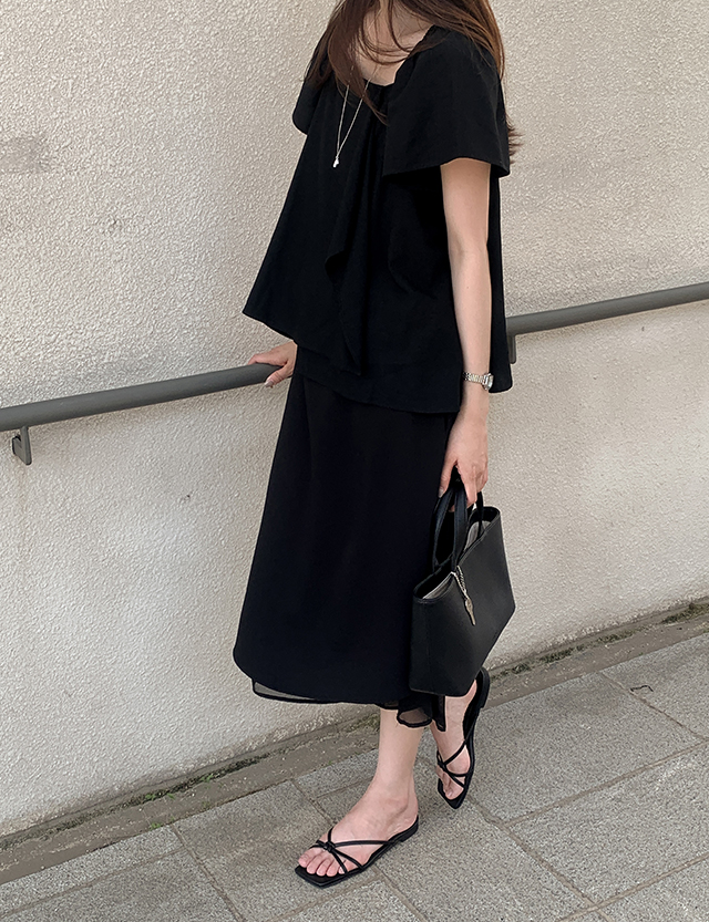 오브딘 뒷밴딩 シーポン レイヤード ロング スカート 87730