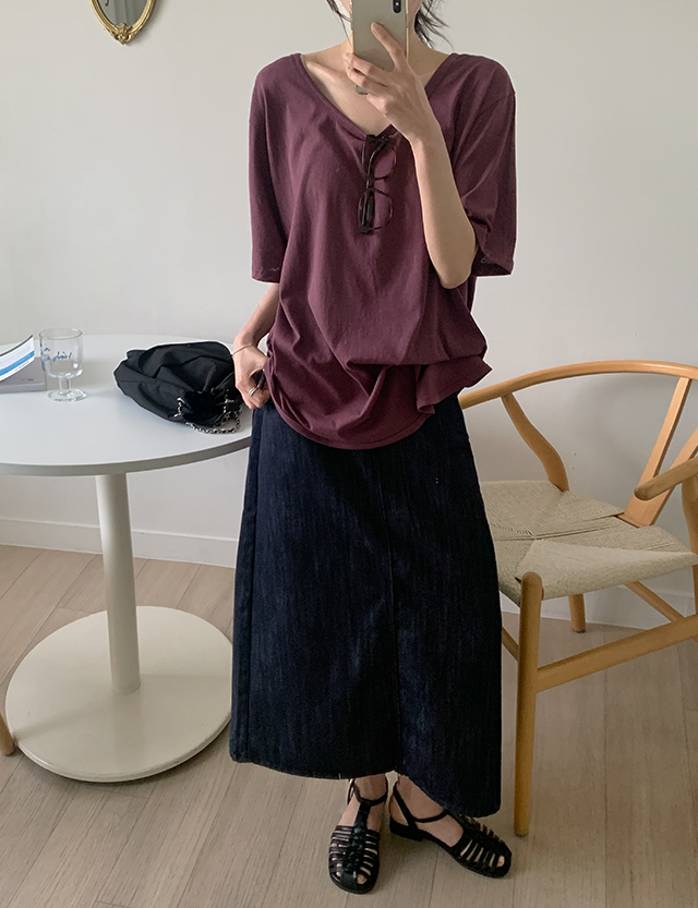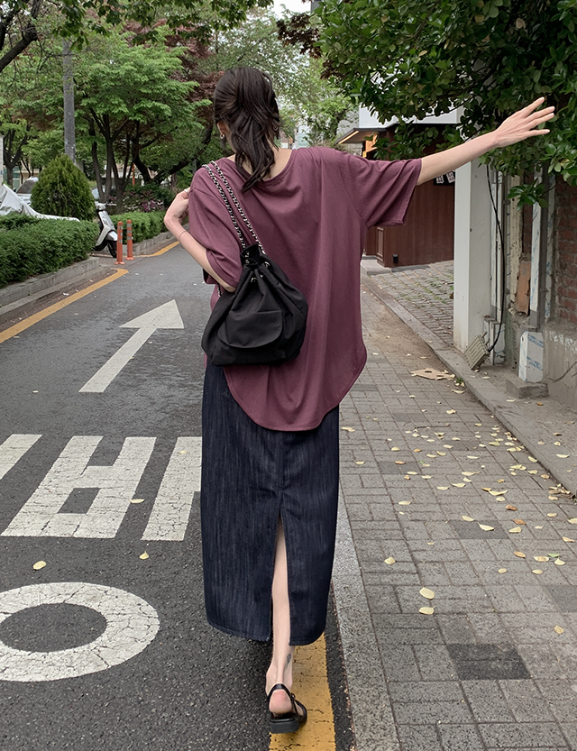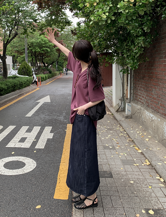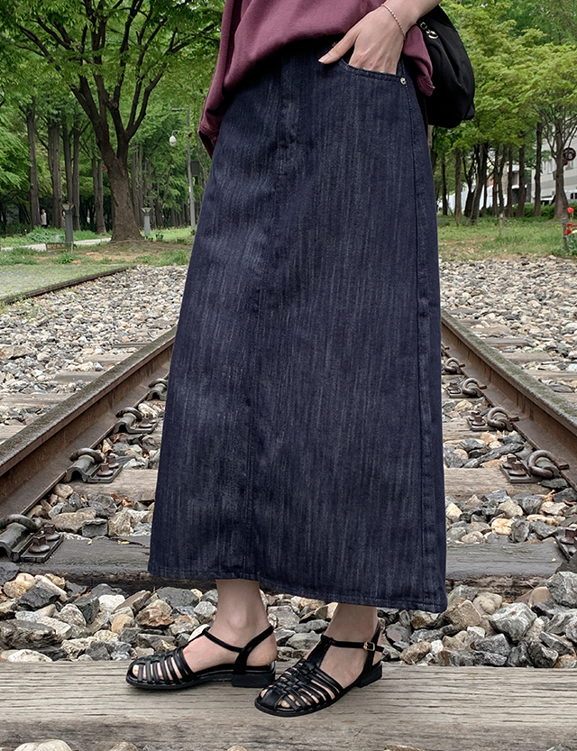 [3XL까지] 타치드 Hライン 뒷밴딩 デニム ロング スカート 87775