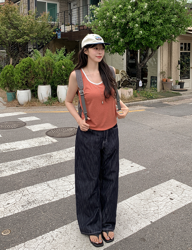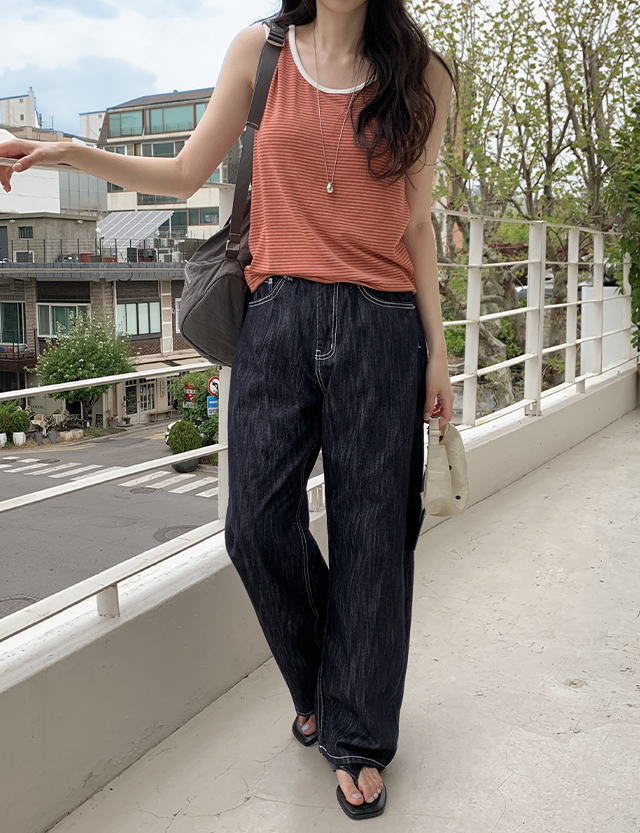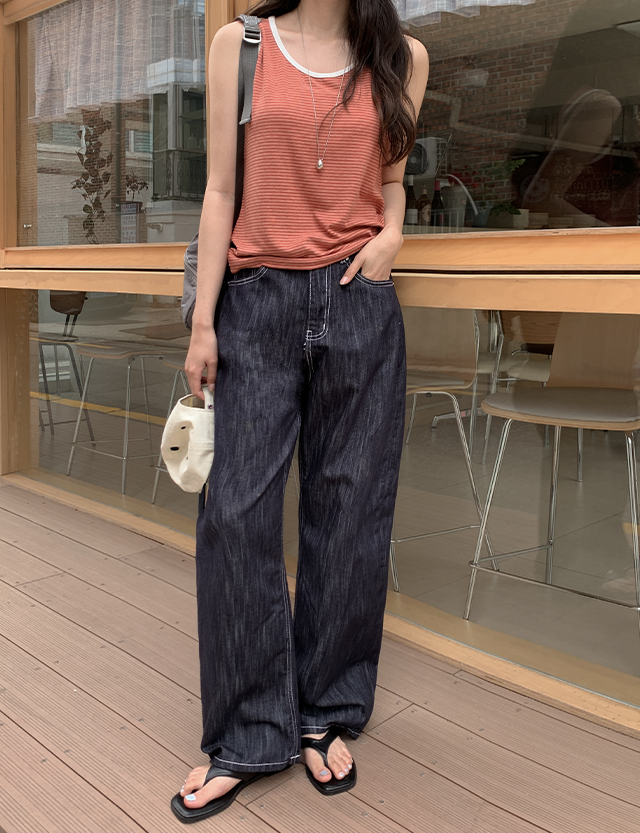 [남여공용] サマー 논페이드 ワイド ウォッシュ デニム パンツ 87756