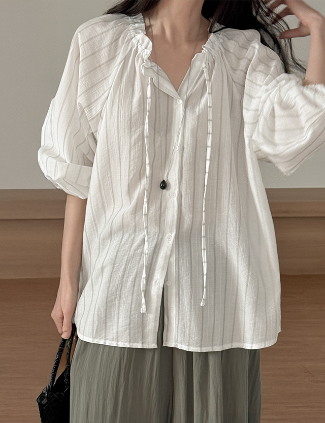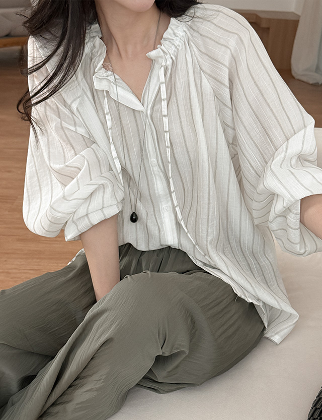 카우린 ストライプ 넥 紐 ブラウス 87841