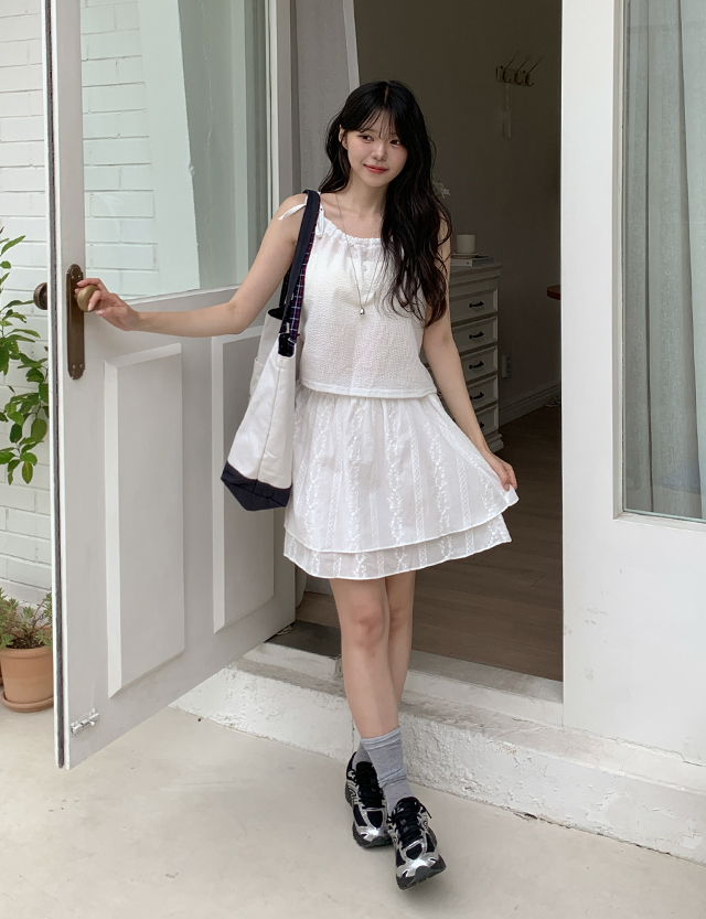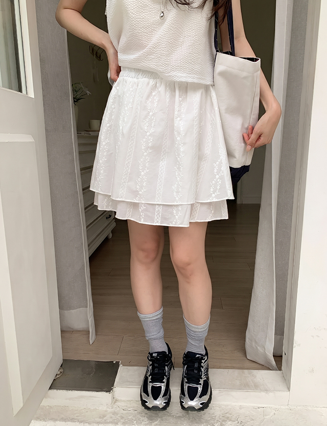 로에앙 フラワー 刺繍 셔링 ゴム ミニ スカート 87750