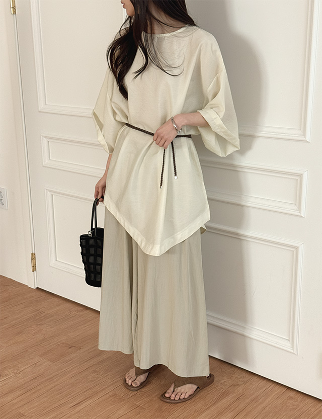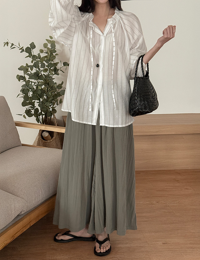 [09초이스] 쏘쿨링 바스락 리얼 ワイド ゴム パンツ 87302